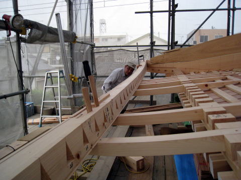 隅木の四方挿し 車知引き胴栓鼻栓打ち